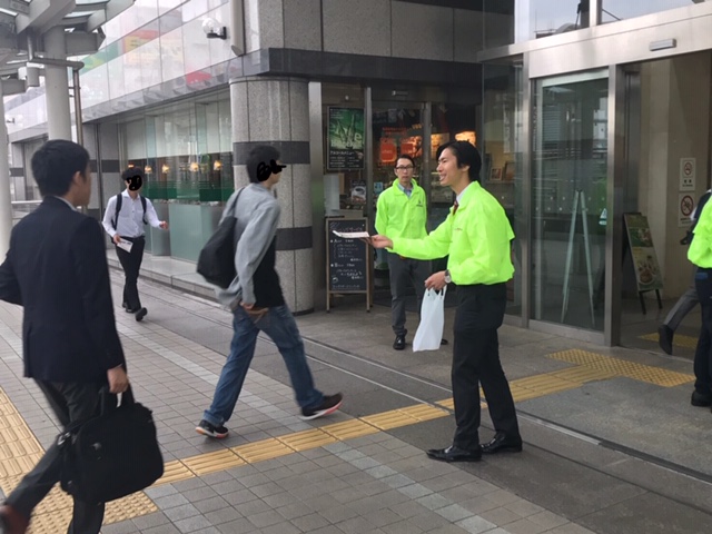 豊橋駅ペデストリアンデッキにて受動喫煙防止と